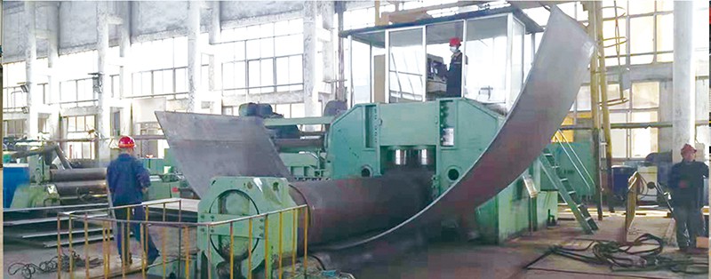 簡析卷板機的工作原理及應(yīng)用范圍卷板機是對板料進行連續(xù)點彎曲的塑形機床,具有卷制O 同的形狀卷板機規(guī)格平整的塑性金屬板通過卷板機的三根工作輥(二根下輥、一根上輥) 之間,借助上輥的下壓及下輥的旋轉(zhuǎn)運動,使金屬板經(jīng)過多道次連續(xù)彎曲(內(nèi)層 壓縮變形,中層不變,外層拉伸變形),產(chǎn)生塑性變形,卷制成所需要 的圓筒、錐筒或它們的一部分。 卷板機的工作原理是卷板機上輥在兩下輥中央對稱位置通過液壓缸內(nèi)的液壓油作用于活塞作垂直升降運動,通過主減速機的末級齒輪帶動兩下輥齒輪嚙合作旋轉(zhuǎn) 運動,為卷制板材提供扭矩。借助上輥的下壓及下輥的旋轉(zhuǎn)運動,使金屬板經(jīng)過 多道次連續(xù)彎曲,產(chǎn)生塑性變形,卷制成所需要的園筒、錐筒或它們的一部分。